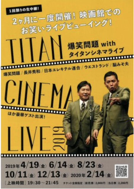 爆笑問題をはじめ、人気芸人達によるこのお笑いライブを、全国のTOHOシネマズ映画館で同時生中継!