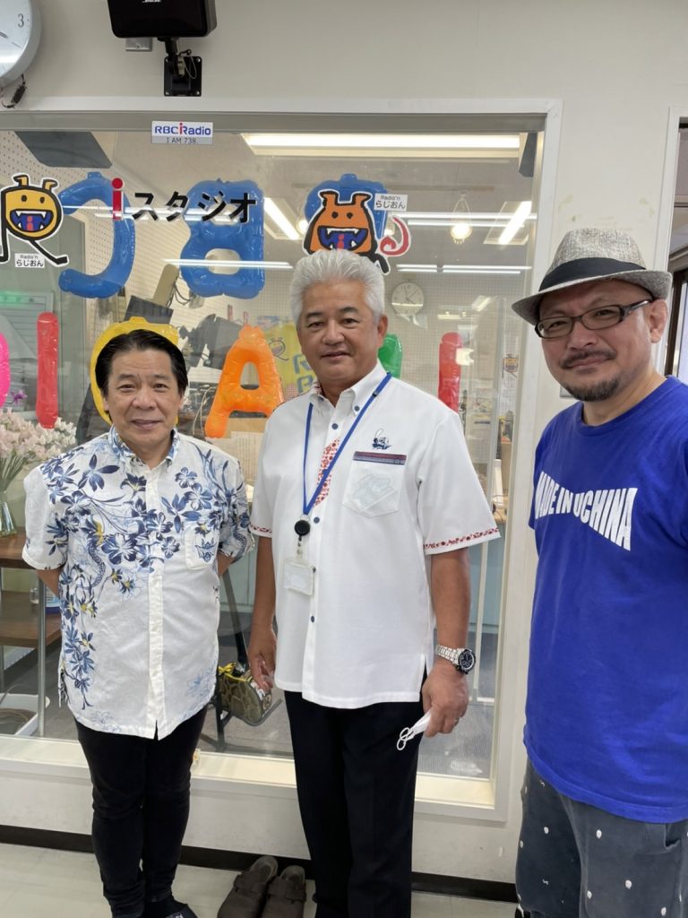 ゲストに株式会社丸浩重機工業 代表取締役 比嘉俊浩 さん (写真中央) にお越しいただきました。