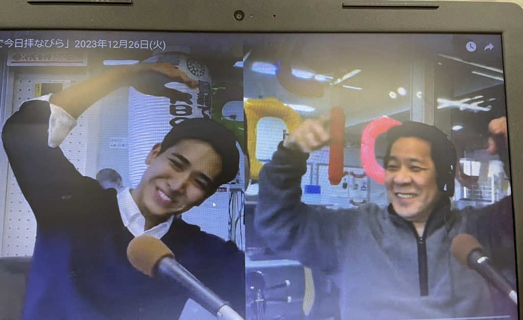 安定の二人に加えて~~🎶 「漲水ぬクイチャー」が流れたら嘉大雅アナウンサーが飛び入り‼