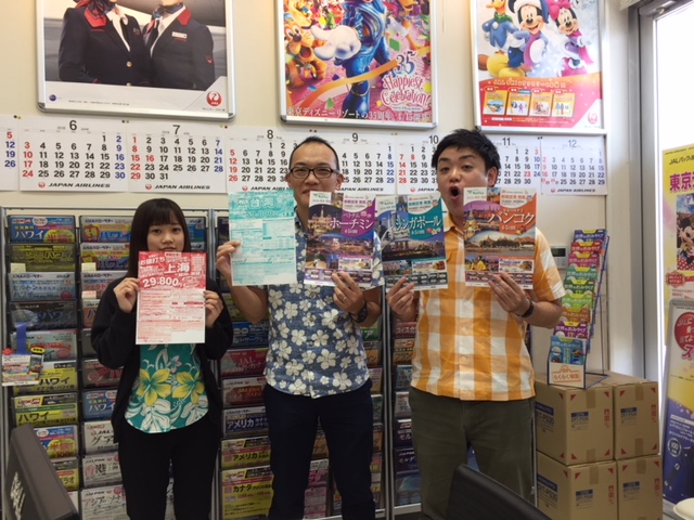旅行の話はみんな好き!ゴールデンウィークや夏休みの予定はお決まりですか? 早く決めれば決めるほど、楽しみな期間が延びる。これ大事! 台北・バンコク・ホーチミン・シンガポールへの旅行プランを案内してもらいましたが、 どれも賢く有意義な時間の使い方を旅のエキスパートの方がコーディネートしてくれています! オリエンタルな雰囲気へようこそ。分からなくなったらもう任せれば良いんです! 驚いたのが、上海3泊4日で食事付き29800円!これは自分ではなかなか作れないでしょう! お問い合わせは、中央ツーリストイオンタウン豊見城店 098-850-5454 まで! 企画会社のツアーウェーブ林さん、ありがとうございましたー!