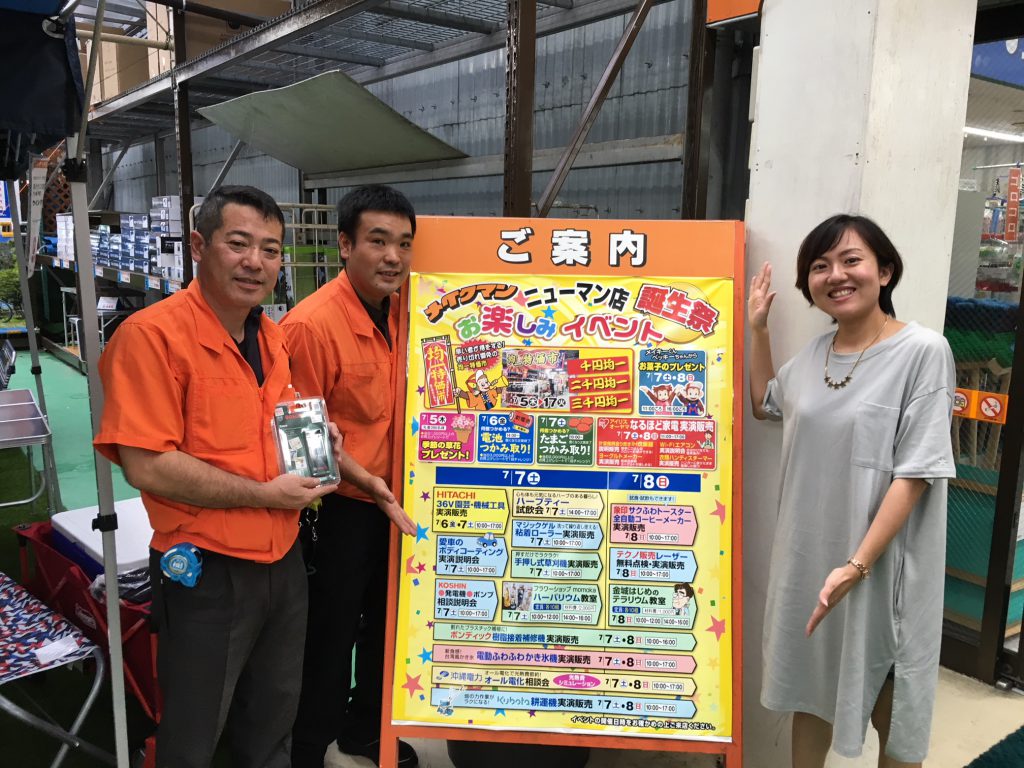 皆さんこんにちは☆ ラジオカーは西原町小那覇「メイクマンニューマン店」におじゃましました! メイクマンニューマン店創業31周年 7/5(木)〜10(火)まで誕生祭を全店にて開催(^o^) 日替わり商品をはじめ、誕生祭ならではの特価品が目白押し〜 また、ニューマン店だけのお楽しみイベントも沢山ありますよ(≧∇≦) 本日の新聞折込チラシをチェック! メイクマンニューマン店 お問い合わせ:098-945-3303 9:30〜20:00