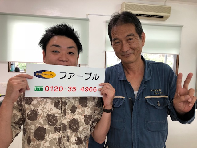 アウトドアアグレッシブリポーターのナガハマヒロキです。 台風の接近で雨風が強まる中、シロアリのファーブルの山田さんに会いたくてやって来ました。 「台風のあとは黒アリが増える」これが業界あるあるみたいです。 アリにも嗜好があるので餌タイプの殺虫剤はいくつか試すべきで、 室内を燻煙して殺虫する場合は火災報知器にビニールを掛けるのを忘れずにという アドバイスを頂きました!ありがとうシロアリ博士、ありがとうシロアリおじさん! シロアリのファーブル 0120-35-4966