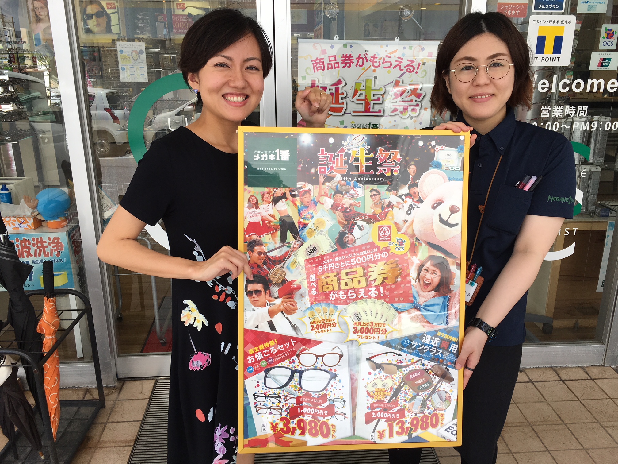 皆さんこんにちは☆ ラジオカーはメガネ1番新都心店におじゃましました! メガネ1番誕生祭開催中★ メガネ、度付きサングラスお買い上げ5千円ごとにOCSまたはサンエー商品券500円がもらえます〜 (例えばお買い上げ2万円で2000円分プレゼント!) 更に、メガネもお安くなっていますし、 メガネを購入した方は、通常9,980円の度付きサングラスが6,000円でゲットできます(≧∇≦) その他サングラス、補聴器もありますので、まずはご来店ください♫誕生祭は全店にて開催! メガネ1番新都心店:098-941-6833 営業時間:10:00〜21:00