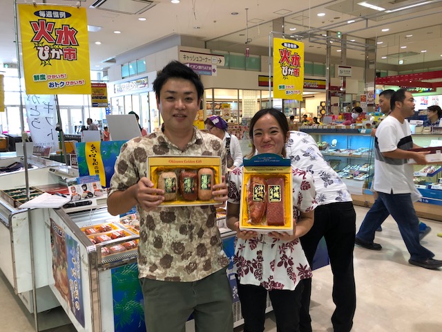 イオン南風原1F催事場から、おすすめお中元情報をお届け。正面入り口から歩いて 約20歩の分かりやすいところにドカーンと設けられています。 選べる楽しさはもちろん、2500円以上のお買い上げで送料無料(これは嬉しい)、 WAONポイントも各お中元によって付与されます(ポイント集めが趣味の人には堪らない) 特におススメはオキハム商品。あぐー、琉美豚など県内外問わず必ず喜ぶだろう 商品が詰め合わされております。買うべき! イオン南風原デイリー担当の西平さん、ありがとうございましたー!