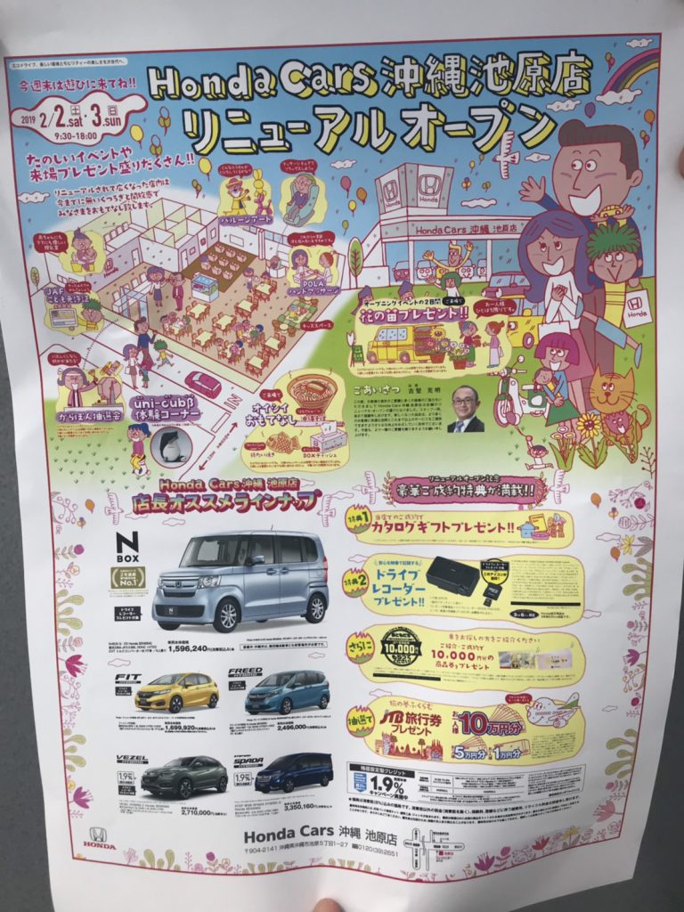2/2(土)2/3(日)にリニューアルオープンしますHonda Cars沖縄 池原店からお届け!