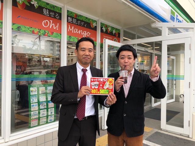ファミリーマート全店で開催。 冷蔵ケースの調理パン(サンドイッチ・バーガー・ロール類)とファミカフェをセットで買うと40円引き。 ファミマ会員は50円引きという嬉しいキャンペーンを展開中。26日までです。 そもそもパンとコーヒーは相性良いから抱き合わせで買っている人はすでに多いはずなのにっ! サンドイッチもパンが改良されて、よりしっとりとバージョンアップしました。 あと、ファミマのサンドイッチはチーズが美味い!チェダーチーズかな、コクがあって私好み。 僕の母校、浦添高校前店よりお届けしました。 広報・マーケティング室課長の宮里さん、ありがとうございましたー!