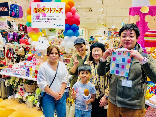 kawaiiからエレガントまで揃う、全ての年代の女性におすすめのアイテムが揃う「ソーニョ・レガーロ TAJIMAYA」に来ました! 画像を加工してよりガール度が上がったと思いますがどうでしょう。 たじま屋全店では、5000円以上の買い物で、ハズレなしのクジが引ける「フレッシャーズフェア2019」を開催中! 新入生・新社会人への贈り物はどうでしょうか。4/7(日)まで開催中! ラインナップ豊富なので、ここに来たらぴったりのものが見つかりますよ! 看板娘のうちの1人、福里さん(右から2番目)と、出勤中の従業員と休みの従業員と、その息子でした。 ありがとうございましたー!
