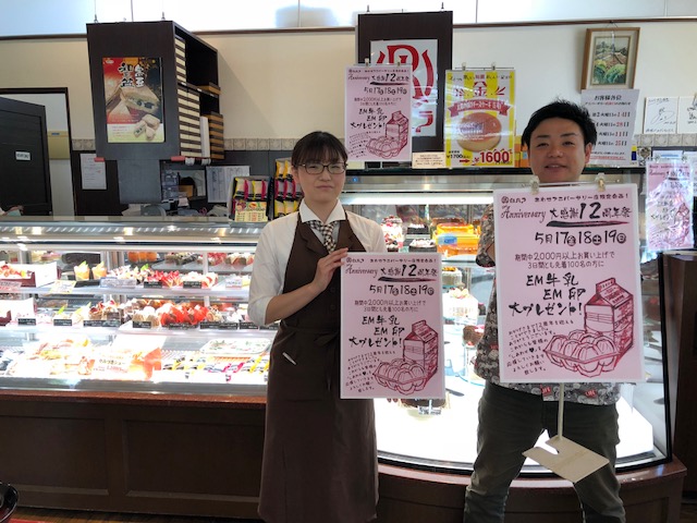 地域に愛され12周年、沖縄市高原の白バラ洋菓子店アニバーサリー店に来ました。 昨日の母の日も大盛況だったようで… 周年を記念して、2000円以上お買い上げで5/17(金)〜19(日)の3日間、先着100名様にEM牛乳とEM卵をプレゼント。 牛乳と卵なんてスイーツのメイン素材ですからね。お店でも使っているものだそうですよ。 特に店舗限定のダックワーズ黒豆和三盆がおすすめ。 バタークリーム・黒豆・和三盆の上質な甘さとチューインな噛みごたえの生地の相性抜群です。 毎日誰かのアニバーサリー、白バラ洋菓子店泡瀬アニバーサリー店にいらっしゃーい! よぎさん、ありがとうございましたー! 「白バラ洋菓子店泡瀬アニバーサリー店」 【電話】098-938-5921 【住所】沖縄市高原5-9-28 【営業】10:00-20:00 【定休】第2・4火曜日