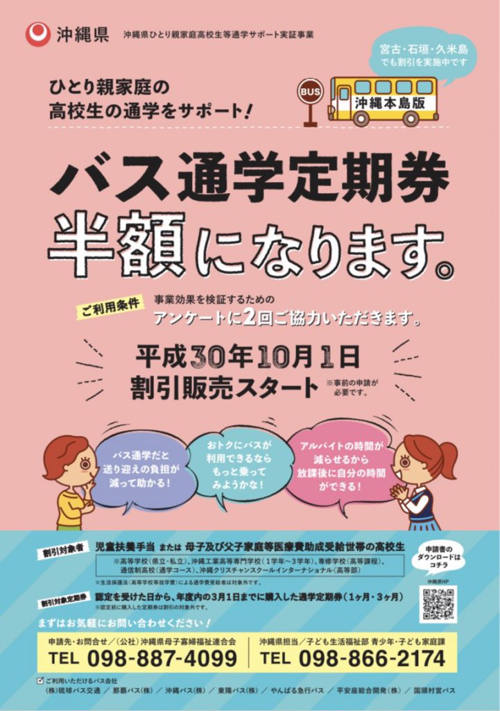 ひとり親家庭の高校生の通学をサポートします、バス通学定期券が「半額」割引受付中のお知らせ!