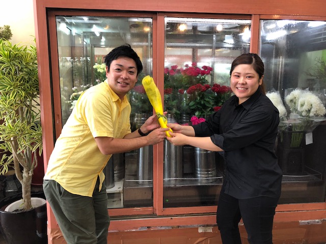 敬老の日のプレゼントはお花でしょう! オランディアガーデンの城間さん(小さい頃になりたい仕事第3位はお花屋さんでした)に、 プレゼントにおすすめの商品をご紹介頂きました。 秋の花は赤や紫・暖色系など、目を惹く色が特長的。盛り花にすることで家の中が華やぎます。 お店の人と相談しながら喜んでもらえる組み合わせを作る作業も楽しいですよね! 3000円以上で那覇・浦添・南風原・豊見城に配達もしているそうですよ! オランディアガーデン本店・パレット久茂地店・ハーバービューホテル店へ! 本店の番号は 098-854-2075 お待ちしております! 薔薇も頂きました。いえーい!