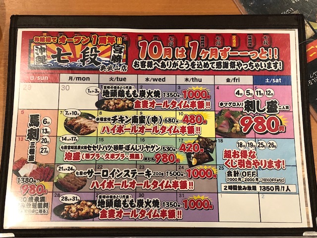 宮崎地鶏が美味しいお店、居酒屋七段奥武山店!