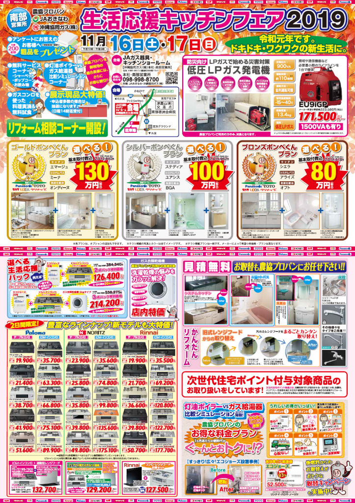 【2日間限定!生活応援キッチンフェア2019】沖縄協同ガス 南部営業所から