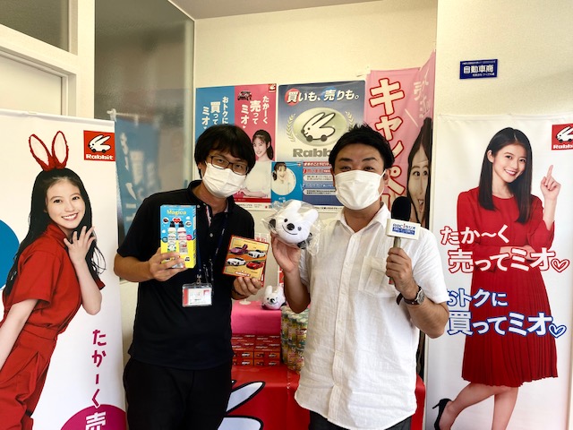 ラビットが買取販売で選ばれる訳は、全国規模のオートオークション業界ナンバーワンの「USSグループ」だから! 中間マージンをカットすることができて」買取は高価で、購入はお得に」が実現できるんです! 現在キャンペーン開催中で、成約した方には、 星のリゾート10万円分・ダイソン掃除機・keenシューズ・宝くじ100枚が抽選で当たりますよ! 11/8(日)まで。那覇新都心店と北谷店で開催しています。 那覇市天久、レクサス隣のラビット那覇新都心店まで。 実はゴリゴリのヘビーリスナーでした、安里店長でした。コーナー持ちたいくらいラジオが好きな人でした!
