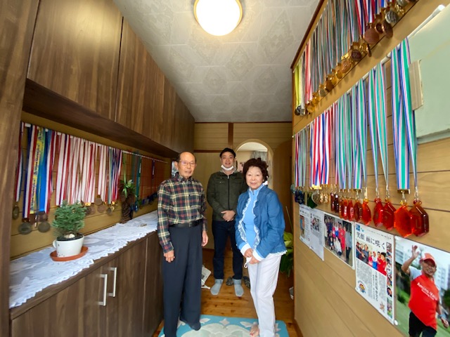玄関先には数え切れないほどのメダルがいっぱい。これ以上のイン