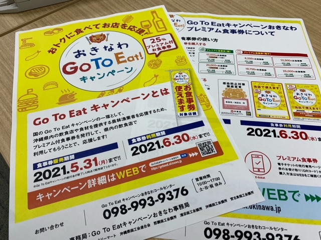 お得に食べて飲食店を応援しよう! 『Go To Eat キャンペーンおきなわ』 25%のプレミアム付き食事券を買って使って飲食店を応援!感染対策をしっかりしているお店なので安心して利用してほしいです! 販売期間は5/31(月)まで!売り切れ次第販売終了ですよ\( ¨̮ )/![]()