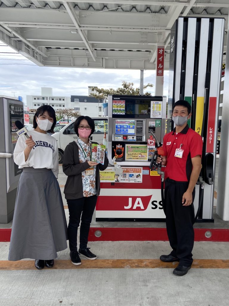 うるま市前原のJAおきなわSS 具志川セルフから具志川セルフ マネージャー 阿嘉雄太さんJAおきなわ 農業振興本部 小波倉 夏実さんにお話を伺いました🎤