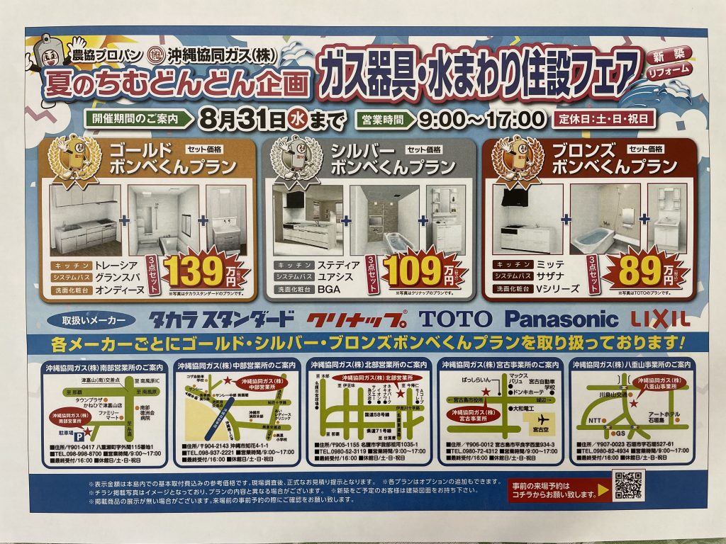 8/31(水)まで『夏のちむどんどん企画ガス器具・水まわり住設フェア』を開催中❤️🔥