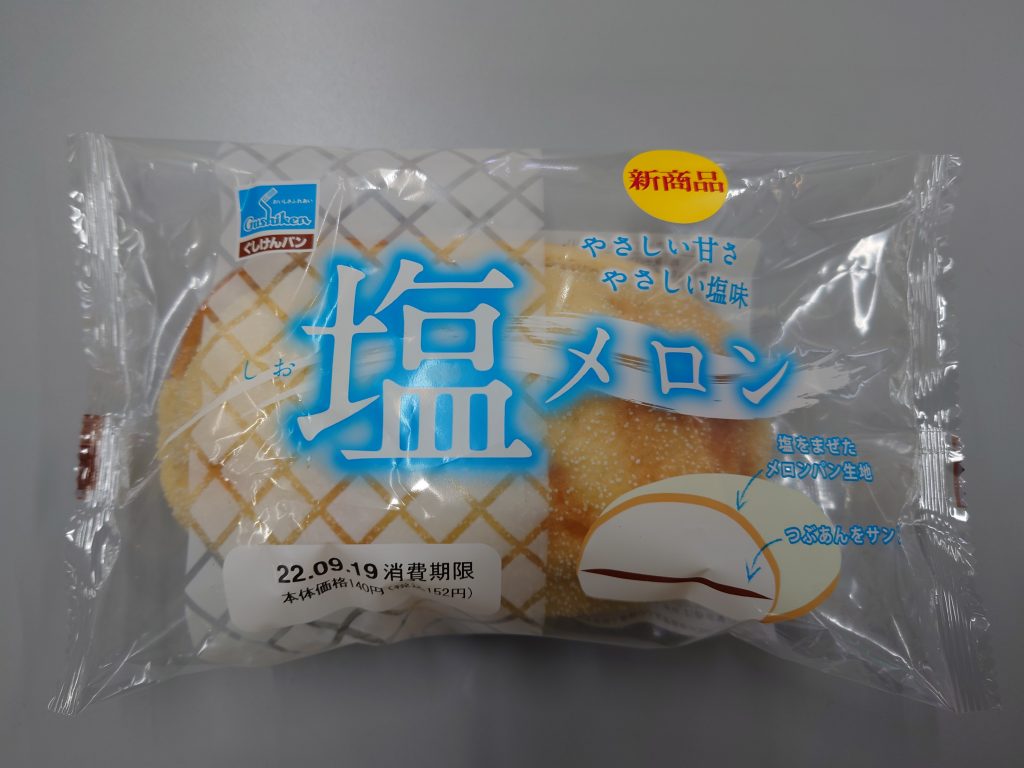 塩味が効いたメロン皮生地を被せたメロンパンに、あんこをサンドしました。