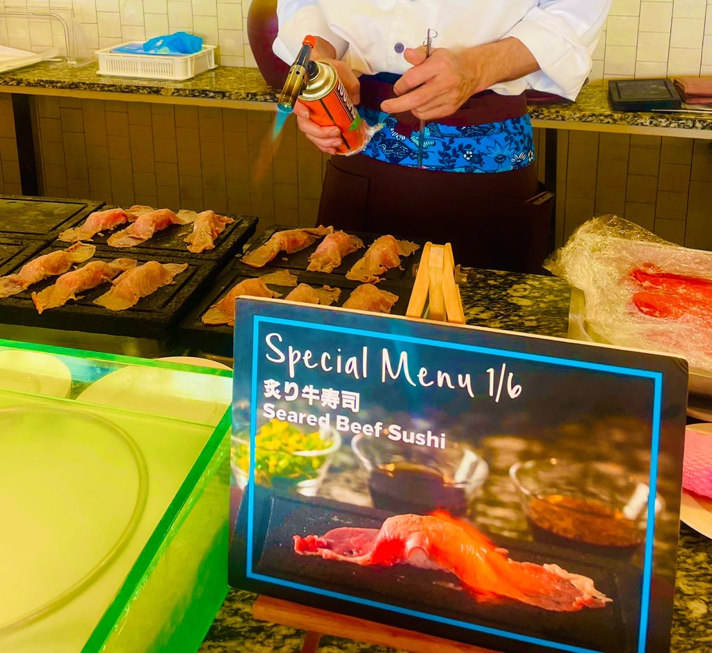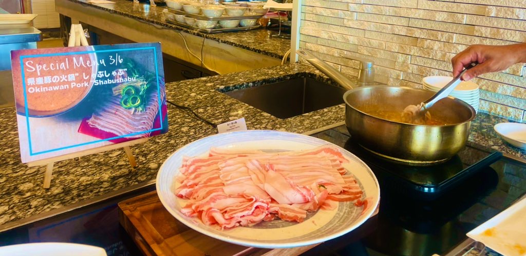 ヒルトン沖縄北谷リゾート🏝️ ビュッフェレストラン スリユンにて 『肉好きに届けるミートフェスティバル』 ランチ&ディナービュッフェを開催🥹🍖 炙り牛寿司。県産豚の火鍋… すごく美味しかったですん🙏✨ これが食べ放題だなんて最高だぁ🤤 LINE登録でお得になりますので是非🙌