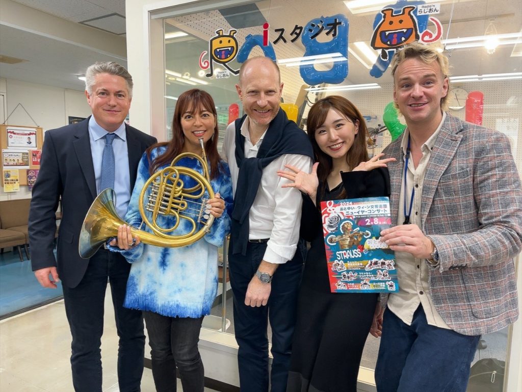 本日のゲストは「フィリップ・ラップベルガー(イベントスタッフ兼通訳)、ゲオルグ・ソンライトナー(ウィーン交響楽団ホルン奏者)、ゲルゲイ・スガーイ( ウィーン交響楽団ホルン奏者 )」さんにお越しいただきました。