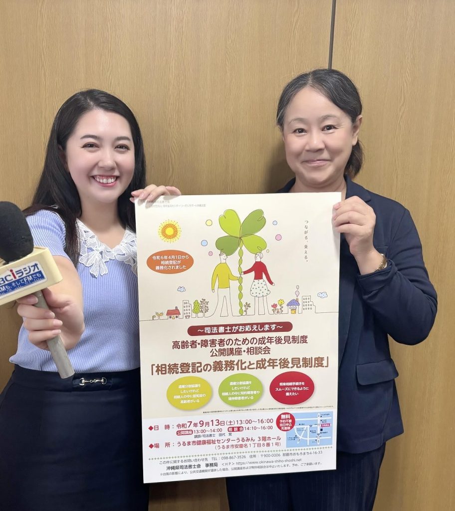 沖縄県司法書士会では、9月13日(土)に「高齢者・障害者のための成年後見相談会」(無料)を開催します。