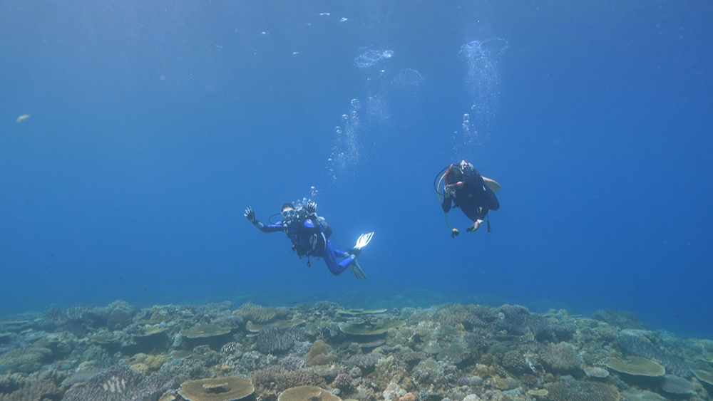 実は今年、大学院を卒業し博士号を取得!そんな真央さんから瀬底の海に昨年の大規模白化を生き抜いた強いサンゴたちがいるということでサンゴ観察のお誘いが!