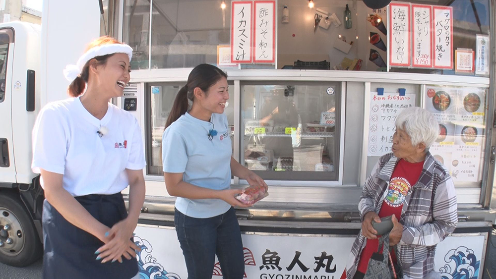 そして、中城村を中心に移動販売を行うキッチンカ―型鮮魚店「魚人丸」を取材。