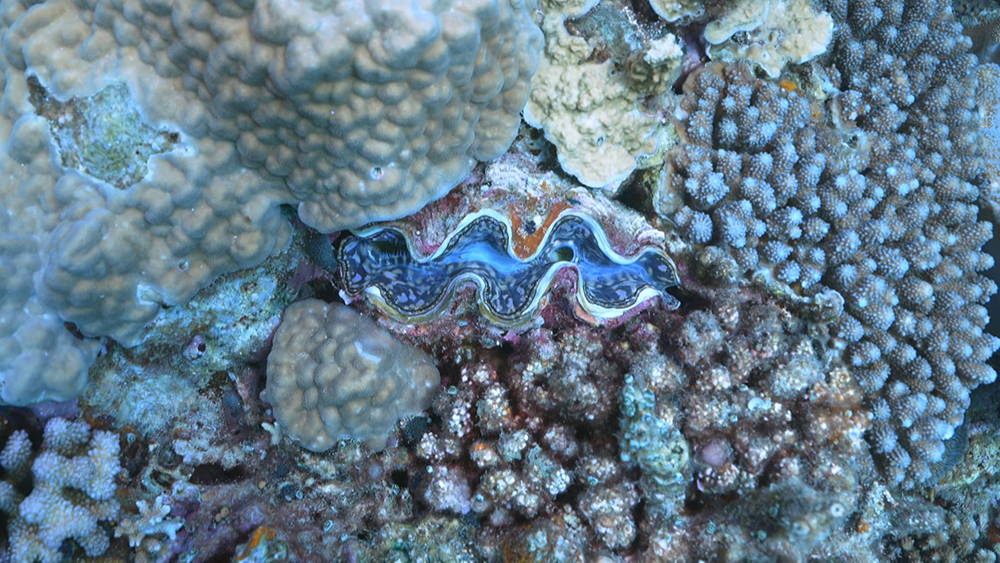 時折クイズを交えながら真央さんと一緒に楽しくサンゴのお勉強。シャコガイとサンゴの意外な共通点も!