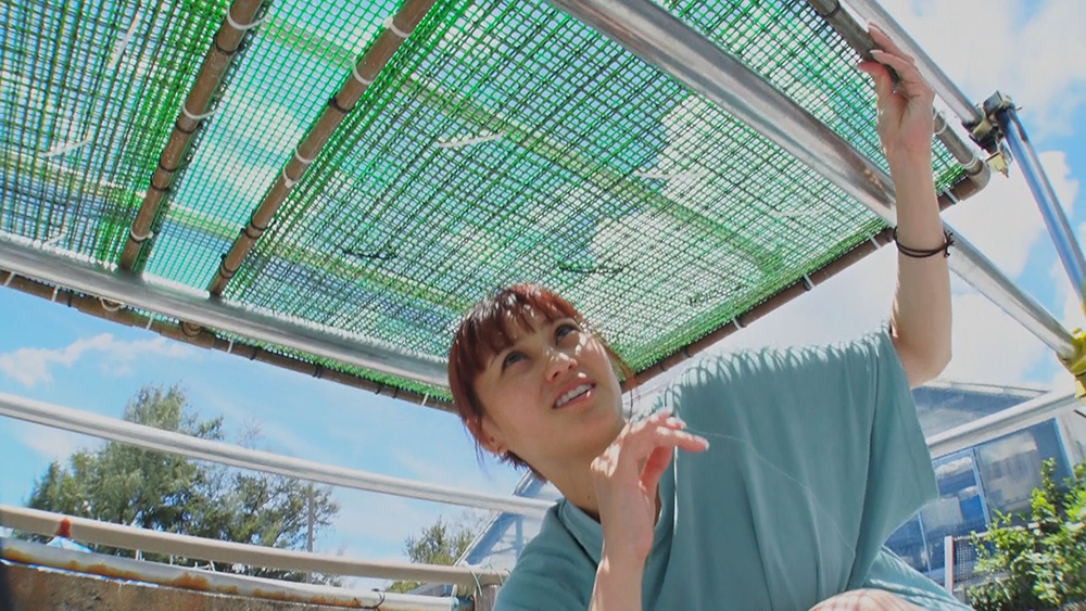 夏の間過ごす中間育成で、高水温対策として銘苅さんが考えたのが「遮光ネット」を設置すること。