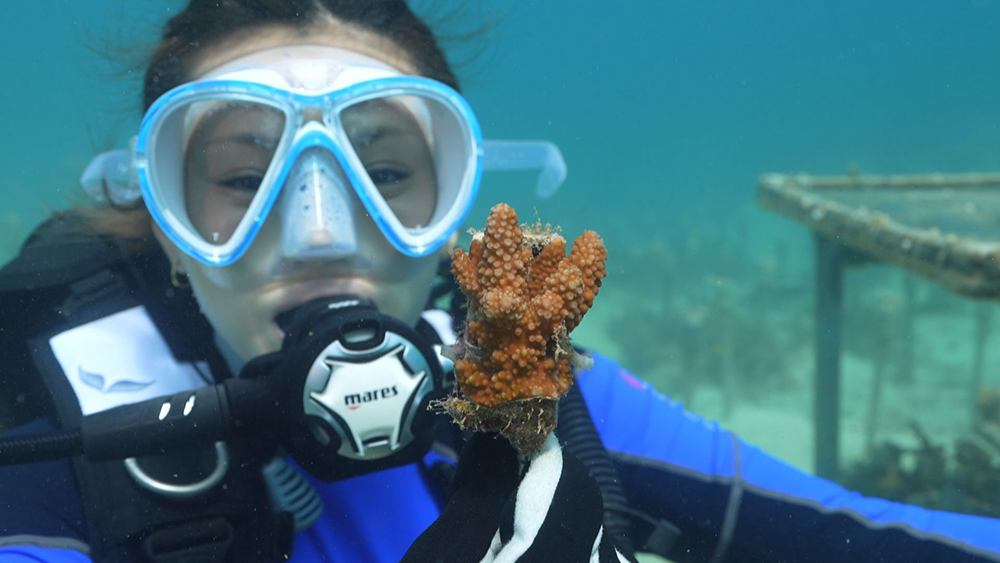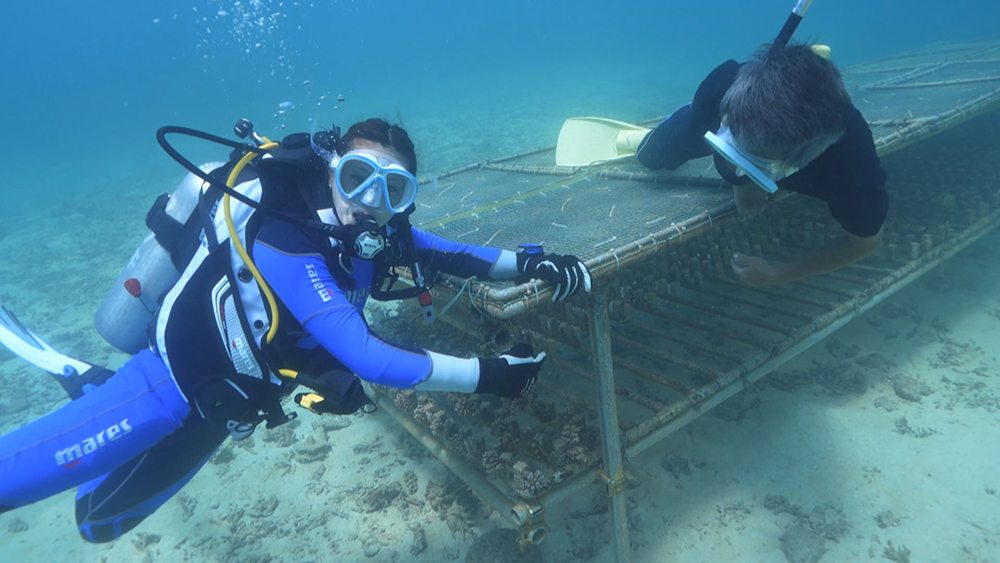 大白化から生き残り、切り分けられた貴重なサンゴで苗づくり。50本の苗が完成。