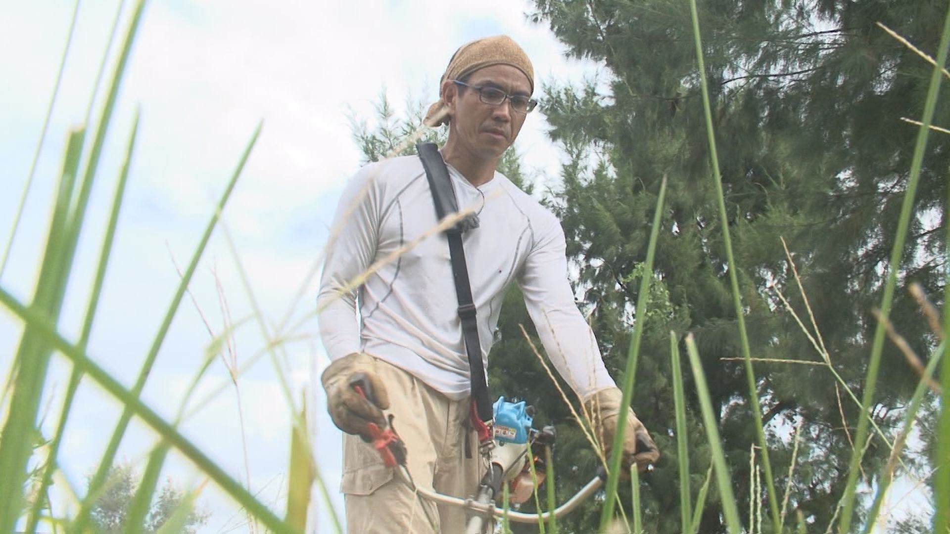 この日はうるま市石川で草刈作業中の村吉政司さんを訪ねました。