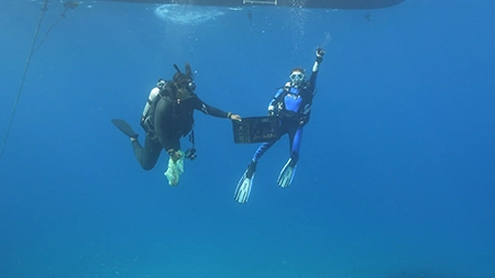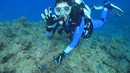 植え付けから3週間後。サンゴの様子を確認するため観察ダイビングへ向かった澪花ちゃん。