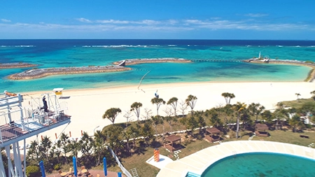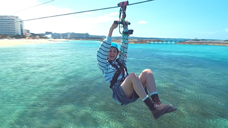 リニューアル1回目はGWのオススメスポットを紹介!まずはシェラトン沖縄サンマリーナリゾート内(恩納村)にあるPANZA沖縄「Mega ZIP」で海越えジップラインを体験。