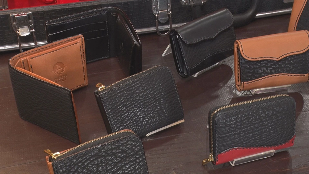 そんなサメを再利用し革製品を作っているのが北谷町に店を構えるRYUKYU SHARK。サメ革を丁寧に処理し、財布や名刺入れなど様々な商品を販売しています。もちろん残ったサメ肉も再利用!