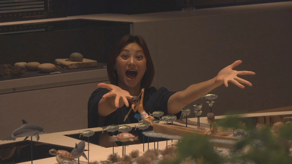 学芸員の藤彰矩さんから出題されたクイズでは、独自の文化をたどった沖縄の歴史背景が見えてきます。過去と今をつなぐ博物館ですが、自然を再現し保全する未来への取り組み『ビオトープ』も始めています。そこには川と海を行き来するヨシノボリの姿が!自然の流れを作り生き物と人が共生できる環境づくりに取り組む北谷町立博物館。