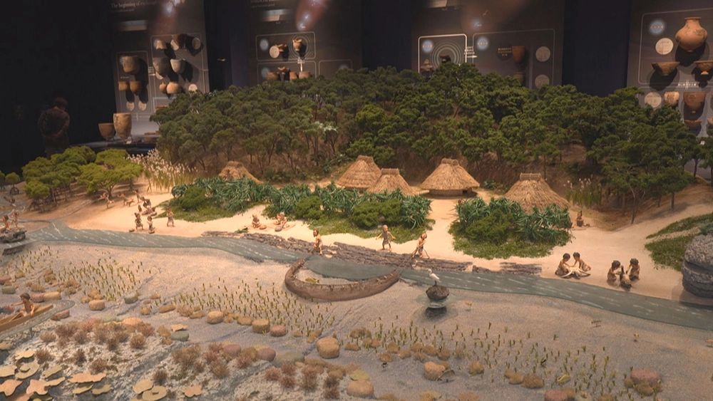 というわけで、澪花ちゃんが続いて向かったのは北谷町立博物館。ここでは北谷で出土したモノやかわいらしいジオラマを通して縄文人の暮らしと自然を学ぶことができます。