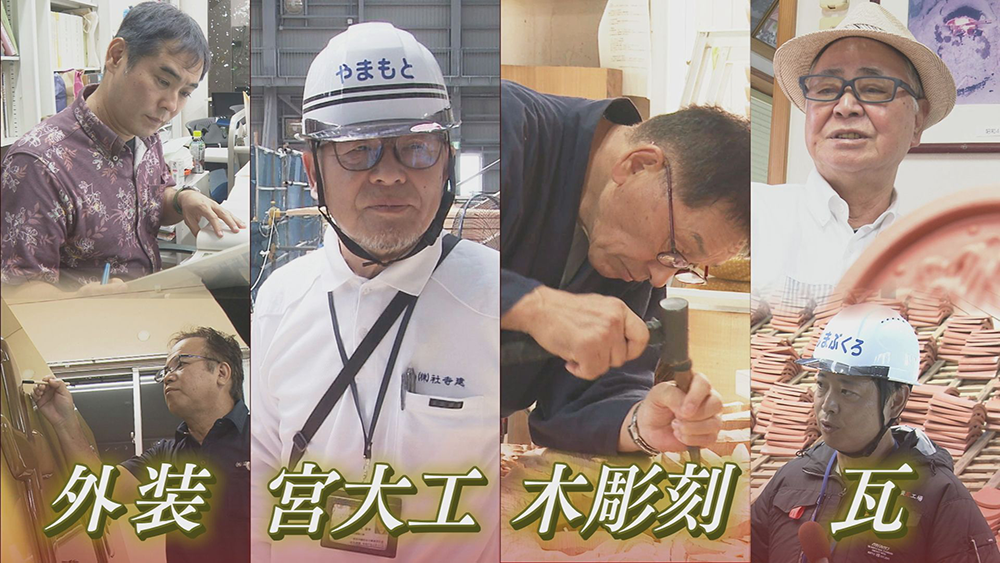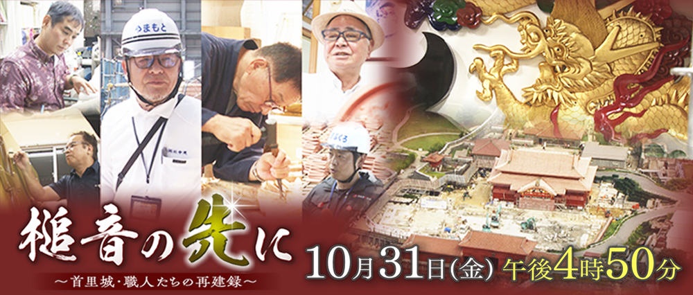 再建中の首里城正殿は外装工事が終了し、素屋根も解体され、約6年ぶりにその姿を現しました。正殿完成まで約1年となったこの節目に、漆職人、宮大工、彫刻師、瓦職人らにスポットを当てて、ここまでの再建の軌跡をプレイバック。晴天の下に姿を現した正殿が、どのようなプロセスを経て、どのような思いの上に建っているのかに迫ります。
