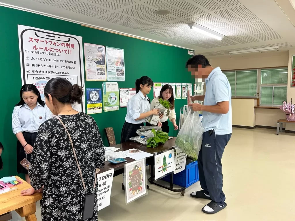 3年生の比屋根愛梨さんと湧川梨理さんは、野菜の廃棄を減らすため、廃棄予定の野菜の収穫から販売まで行う探究活動「ベジカラフライデー」に取り組みました。